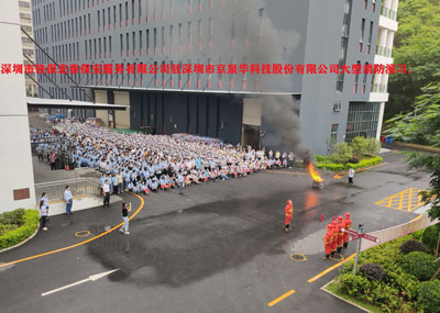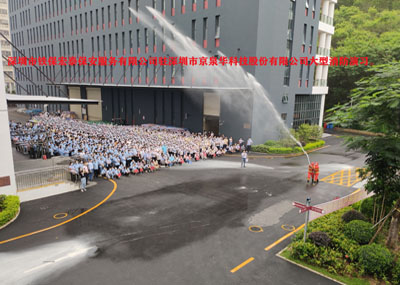 深圳市鐵保宏泰保安服務有限公司駐深圳市京泉華科技股份有限公司安保隊員進行大型消防演習。